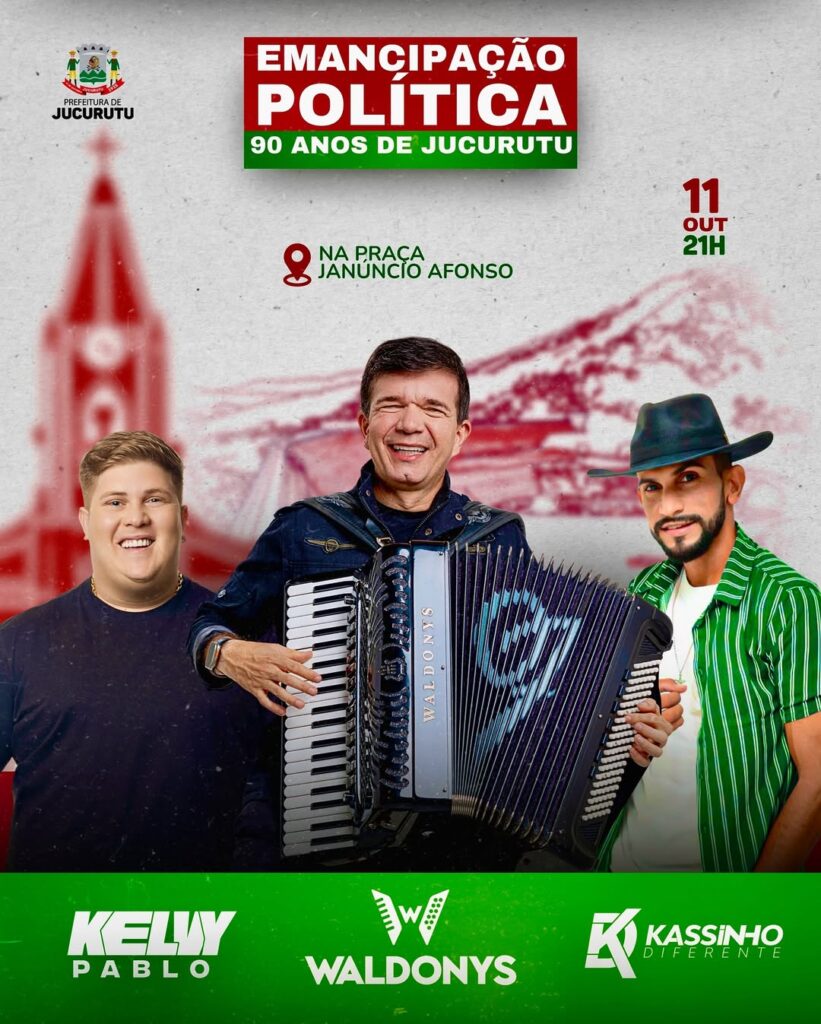 🎉 Jucurutu celebra seus 90 anos de Emancipação Política com uma grande festa! 📍 Praça Janúncio Afonso 📅 11 de outubro | 🕘 21h Shows com Kelly Pablo, Waldonys e...