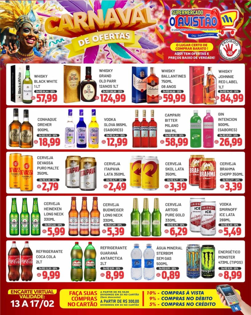 🎉🍻 CARNAVAL DE OFERTAS É NO AVISTÃO! 🍻🎉 Whisky, vodka, cerveja, energéticos, refrigerantes e muito mais com preços especiais pra você curtir a folia sem pesar no bolso! 💃🔥 📅...