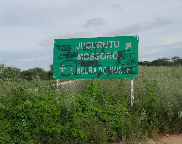 Blog Jucurutu em Foco – Uma placa de sinalização na rotatória da RN-118, trecho que liga Jucurutu, Mossoró e Serra Negra do Norte, foi alvo de vandalismo com a sigla...