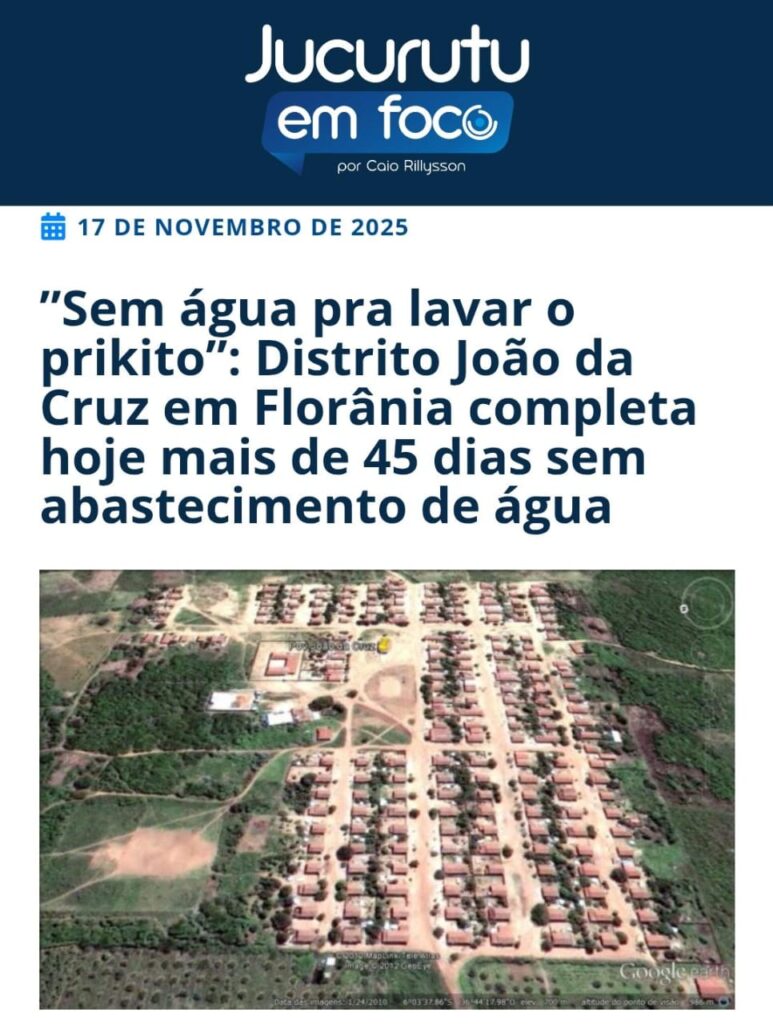 Após o nosso blog Jucurutu em Foco ter noticiado em nossas redes uma matéria bastante polêmica, referente a falta d’água no distrito de João de Cruz em Florânia, a Prefeitura...
