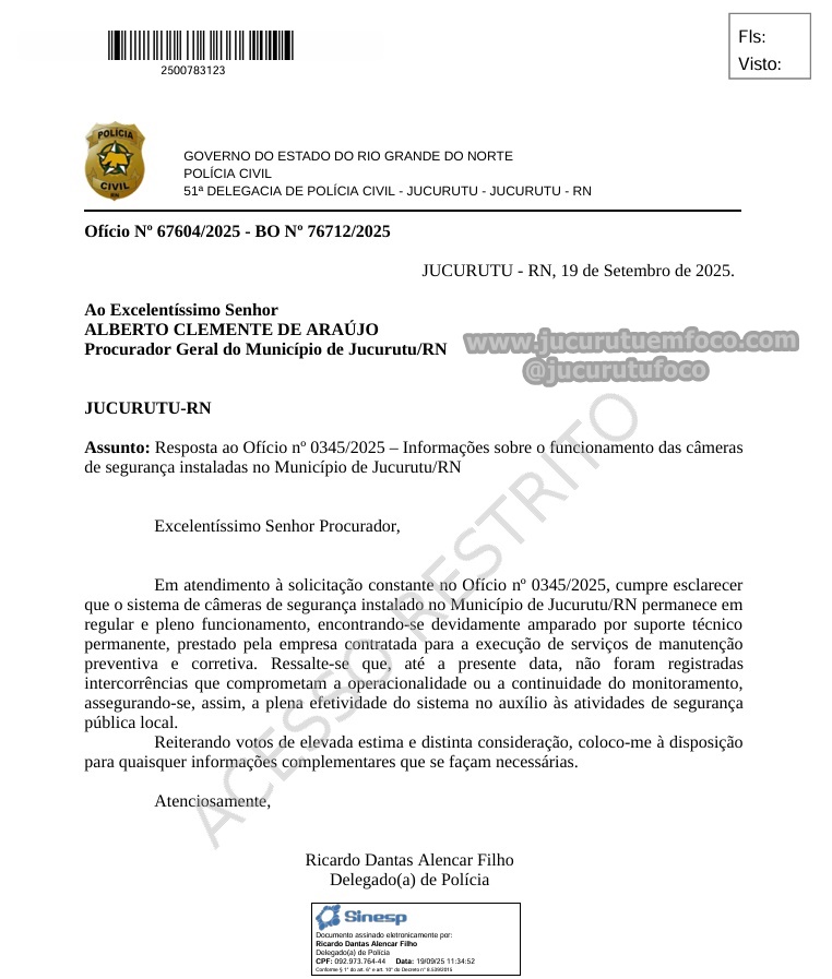 Nosso blog Jucurutu em Foco conseguiu com exclusividade o documento em oficio da Polícia Civil, onde o delegado da cidade Ricardo Dantas Alencar Filho, representando a 51° DP desmentiu a...