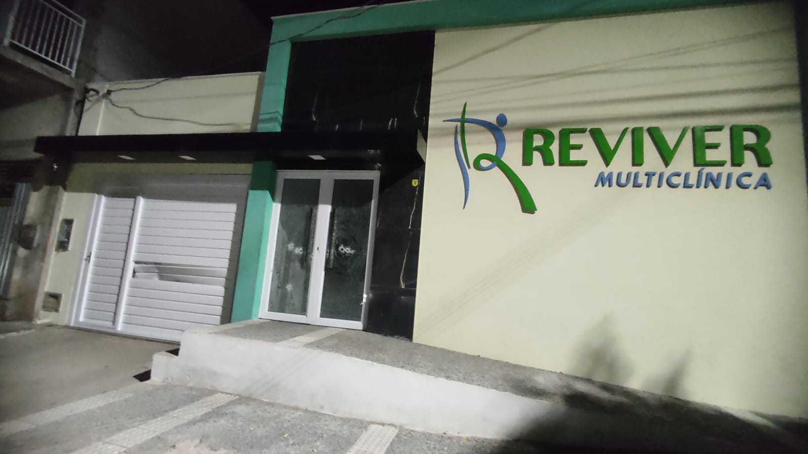 Câmeras de segurança flagraram o momento em que dois homens usando capacete se aproximam dos imóveis, localizados na Rua João Gomes de Oliveira, no Centro, e começam a atirar. Os disparos atingiram a porta da clínica e o portão da residência, que ficam lado a lado.