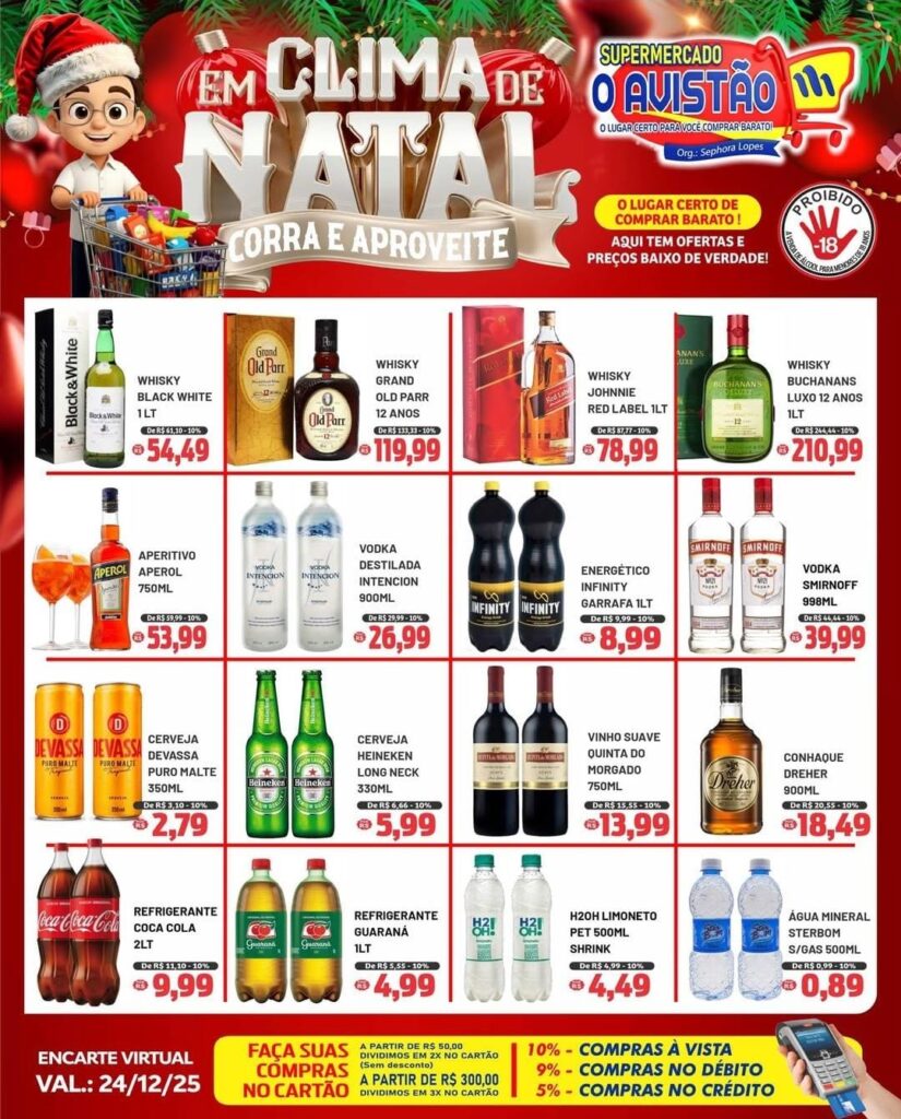 O Natal de Jucurutu começa no Supermercado O Avistão! Bebidas para todos os estilos, com preços especiais e tudo o que você precisa para deixar sua confraternização completa. 🍻🥃