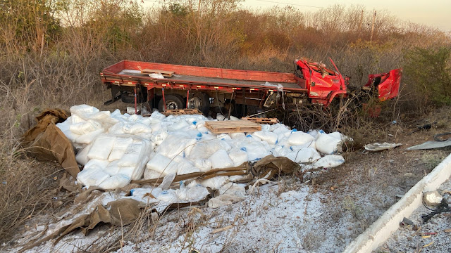 O carro de passeio ficou completamente destruído na parte dianteira e foi lançado a mais de 100 metros de distância do ponto inicial da colisão. Já o caminhão, devido à força da batida e ao peso da carga, acabou saindo da rodovia e parando em meio à vegetação, às margens da estrada — havendo indícios de que chegou a capotar.