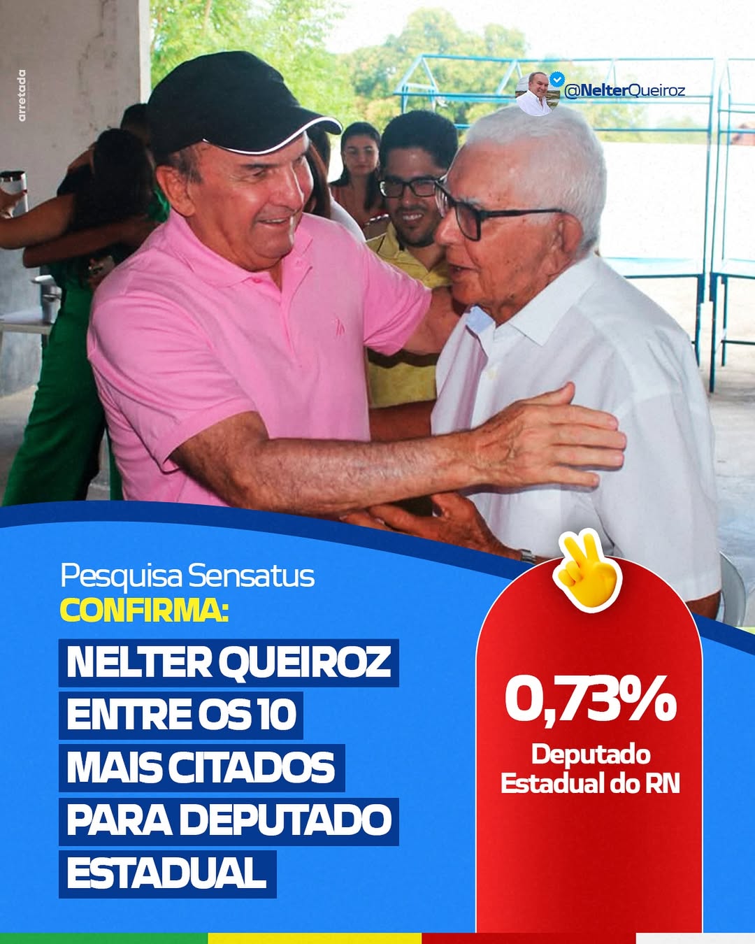 A pesquisa Sensatus apontou que o deputado estadual Nelter Queiroz (PSDB) seria reeleito se as eleições fossem hoje, o parlamentar aparece entre os 10 mais citados para deputado estadual.