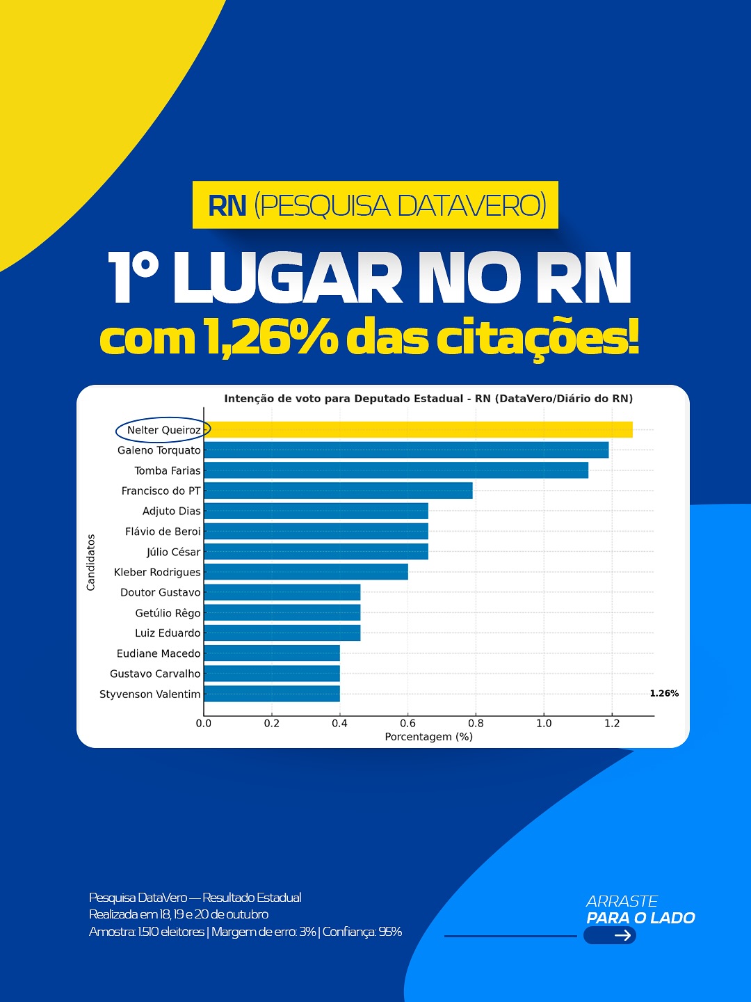 Nelter Queiroz foi o mais citado com 1,26%. Em seguida vem Galeno Torquato, Tomba, Francisco do PT e Adjuto Dias.