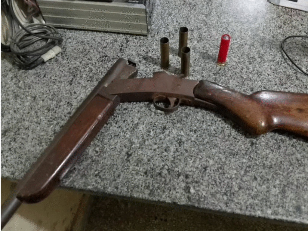 Durante a ação, os policiais colheram os relatos, localizaram o acusado e, com base nas informações, encontraram a arma escondida em uma árvore no local. Todo o material foi encaminhado à delegacia para os procedimentos legais.