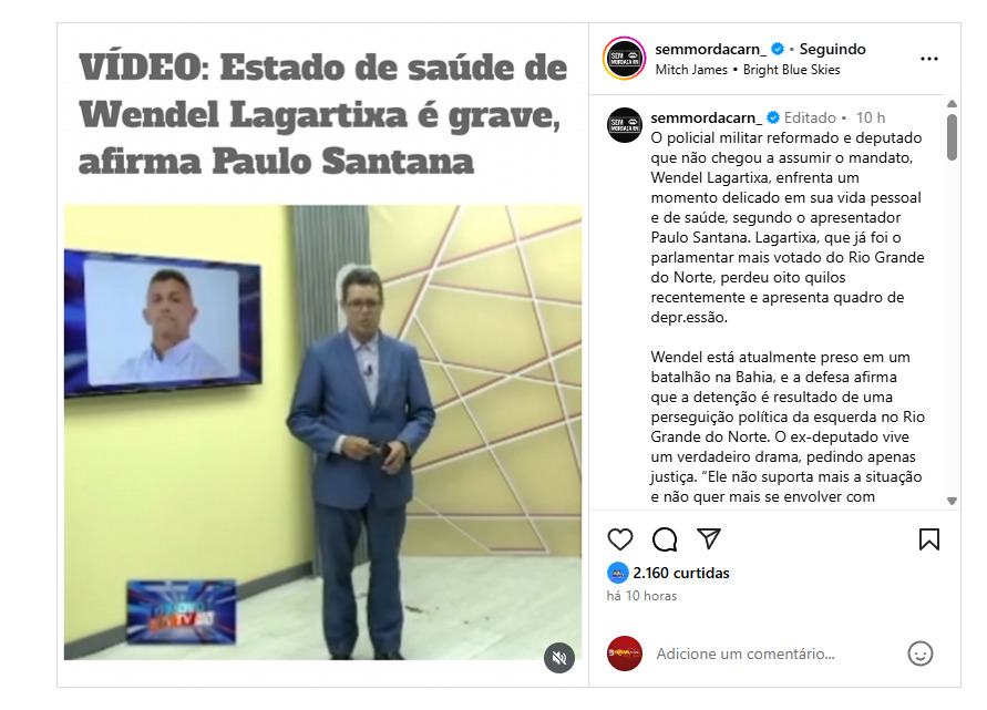 É lamentável que alguém que obteve tanta representatividade no estado do RN esteja vivendo uma condição como essa. Esperamos que a situação se resolva para que ele finalmente encontre paz”, acrescentou.